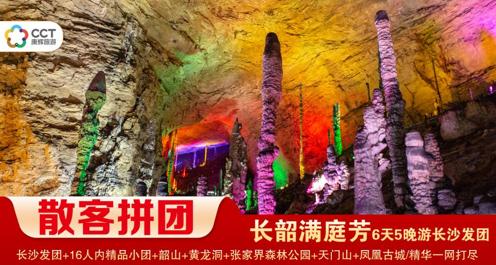 D3長沙出發(fā)乘(高鐵)赴張家界(2h抵達(dá),更方便更快捷)--下午游溶洞全能冠軍(黃龍洞景區(qū))--晚觀(民族大戲)魅力湘西晚會