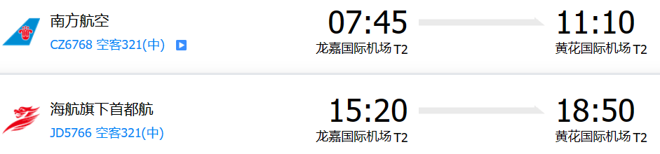 長(zhǎng)春龍嘉國(guó)際機(jī)場(chǎng)有直飛長(zhǎng)沙黃花機(jī)場(chǎng)的航班,具體航班參考: