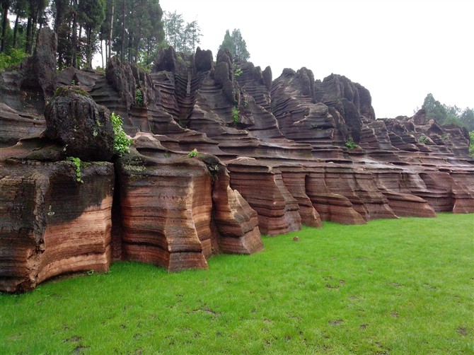 據(jù)地質(zhì)專家考證,紅石林巖石形成歷史約有 4.5 億年,紅石林地域與坐龍溪峽谷一樣同屬地史上所稱的揚(yáng)子古海,海底沉積了大量混合泥砂的碳酸鹽物質(zhì),經(jīng)地殼運(yùn)動(dòng)和侵蝕、溶蝕作用,形成了這片美麗的地質(zhì)奇觀。