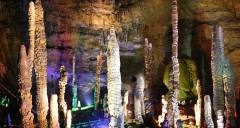 黃龍洞位于索溪峪東面,被稱為“地下魔宮”,洞口霧靄迷漫,洞內長廊蜿蜒,鐘乳懸浮,石柱石筍林立,還有石簾、石幔、石花、石琴,琳瑯滿目,異彩紛呈,令人目不暇接。“洞外洞”、“樓外樓”、“天外天”、“山外山”,盤根錯節(jié)。黃龍洞內可分四層,水陸并進,從最低陰河至最高穹頂,垂直高度差有100多米,洞內有一個水庫(黃龍水洞)、二條陰河(響水河、水晶河)、三個地下瀑布(黃龍瀑、天水瀑、天地瀑)、四個水潭、十三個廳(宮)(龍舞宮、水晶宮、迷人宮……)、九十六條游廊,長度約達15公里,最大的廳堂有12000平方米,可容納萬人。真可謂是洞中乾坤大,地下有洞天。入黃龍洞,如入人間仙境一般。