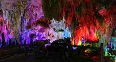 更絕的是,鵝管和鐘乳石倒映在水中,上下映照、渾然一體、形成了一座五光十色的巨大金山,光芒四射、龍鱗點點。她離奇多變的光影、五彩繽紛的顏色、千姿百態(tài)的形狀、加上水滴池面、洞中的天籟之音,形成了神秘之境讓你感到撲朔迷離,如在夢中、疑似天堂。當(dāng)您走近她時,就體會到什么是人間仙境,什么是滄海桑田;當(dāng)您聆聽她時,就知道什么是余音繞梁,什么是仙樂飄飄。那感覺、那韻味豈是語言能描述出來的。