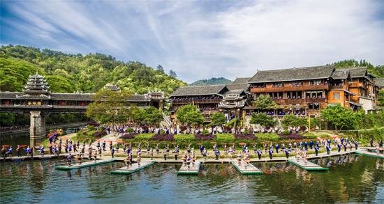 觀看皇都侗族文化村藝術(shù)團的精彩表演,則是另外一番享受,《敬酒歌》 、《扯扯摸》 《踩簸箕》 、 《禾桿歌》、 《鬧茶》 《搶蛋》、《板凳情歌》 、《筒地咯羅鬧歌堂》等一組民族色彩十分濃厚的文化節(jié)目匯集了侗族傳統(tǒng)文化的精華,輕歌曼舞,回腸蕩氣,于行云流水間透出一種陽剛之美。
